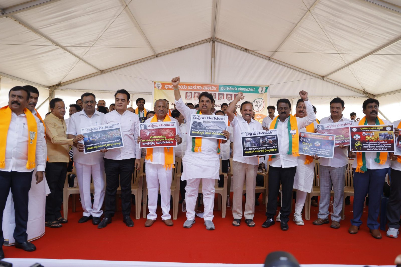 ರಾಜಧಾನಿ ಬೆಂಗಳೂರಿನ ಅಭಿವೃದ್ಧಿಗೆ ನಿರ್ಲಕ್ಷ್ಯ ತೋರುತ್ತಿರುವ ಕಾಂಗ್ರೆಸ್ ಸರ್ಕಾರದ ದುರಾಡಳಿತದ ವಿರುದ್ಧ ಬೆಂಗಳೂರಿನ ಸ್ವಾತಂತ್ರ್ಯ ಉದ್ಯಾನದಲ್ಲಿ ಬಿಜೆಪಿಯಿಂದ ಬೃಹತ್ ಪ್ರತಿಭಟನೆ ನಡೆಯಿತು. ಸುದ್ದಿಗಾರರೊಂದಿಗೆ ಮಾತನಾಡಿದ ಅವರು, ಕಾಂಗ್ರೆಸ್‌ ಸರ್ಕಾರ ಬೆಂಗಳೂರನ್ನು ಕಡೆಗಣಿಸಿದೆ. ರಸ್ತೆಗಳಲ್ಲಿ ಗುಂಡಿ, ಕಸದ ರಾಶಿ ಎಲ್ಲೆಡೆ ಕಾಣುತ್ತಿದೆ. ಪೌರಕಾರ್ಮಿಕರಿಗೆ ಹಾಗೂ ಗುತ್ತಿಗೆದಾರರಿಗೆ ನೀಡಲು ಹಣವಿಲ್ಲ. ರಾಜಧಾನಿಯಲ್ಲಿ ಒಂದೇ ಒಂದು ರೂಪಾಯಿ ಕಾಮಗಾರಿ ನಡೆದಿಲ್ಲ. ಮುಖ್ಯಮಂತ್ರಿ ಹಾಗೂ ಉಪಮುಖ್ಯಮಂತ್ರಿ ನಗರ ವೀಕ್ಷಣೆ ಮಾಡಿದ್ದಾರೆಯೇ ಹೊರತು, ಅಭಿವೃದ್ಧಿಗೆ ಹಣ ನೀಡಿಲ್ಲ ಎಂದು ದೂರಿದರು.