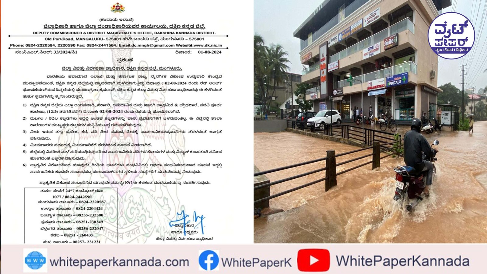 ಮಂಗಳೂರು : ದಕ್ಷಿಣ ಕನ್ನಡ ಜಿಲ್ಲೆಯ ಶಾಲಾ-ಕಾಲೇಜುಗಳಿಗೆ ಆಗಸ್ಟ್ 2 ರಂದು ಶುಕ್ರವಾರ ರಜೆ ಘೋಷಣೆ ಮಾಡಿ ಜಿಲ್ಲಾಧಿಕಾರಿಗಳು ಆದೇಶ…