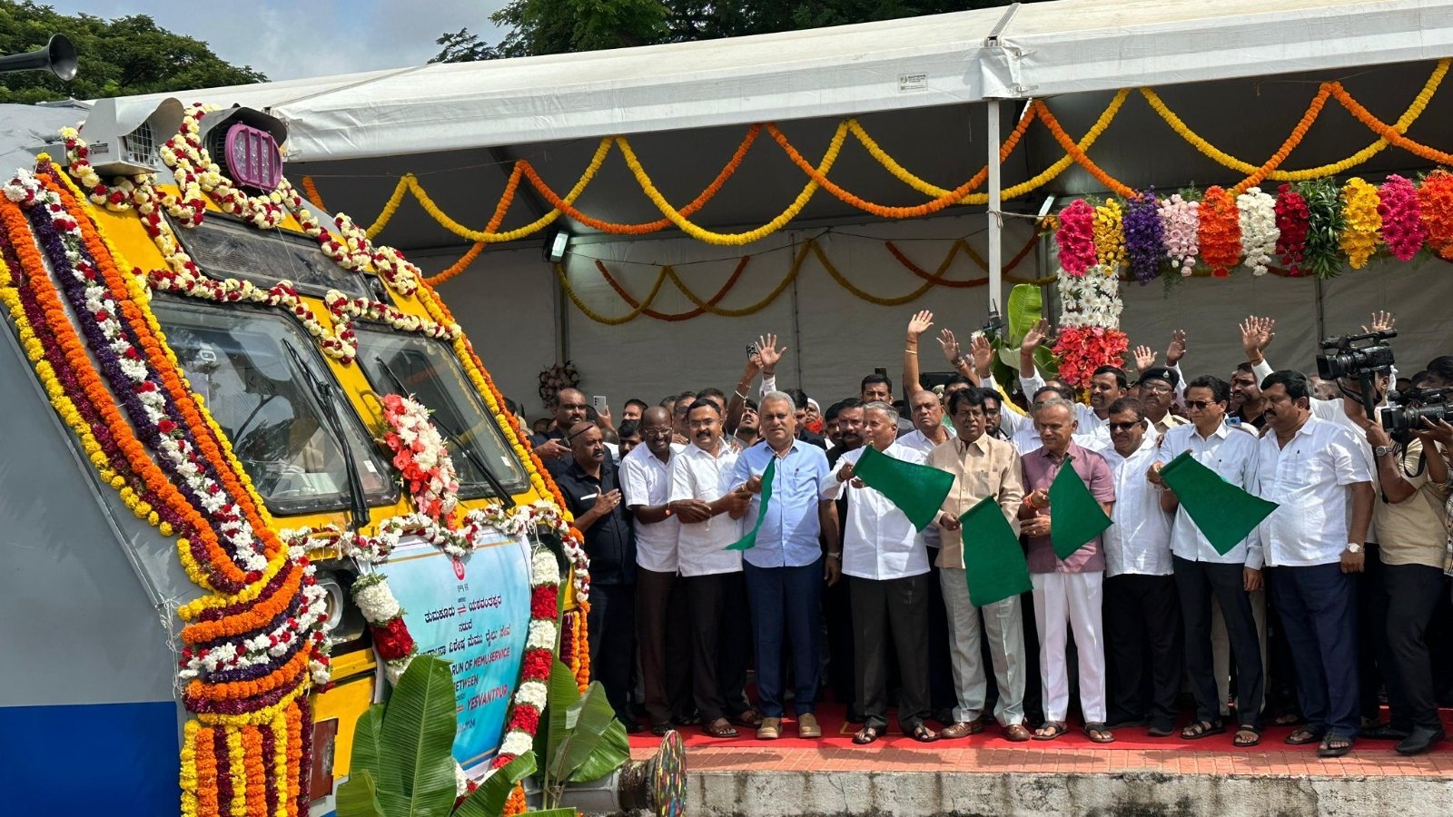 ತುಮಕೂರು: ತುಮಕೂರು-ಯಶವಂತಪುರ ಮೆಮು ರೈಲಿಗೆ ಚಾಲನೆ ಕೇಂದ್ರ ರೈಲ್ವೆ ಖಾತೆ ರಾಜ್ಯ ಸಚಿವ ವಿ. ಸೋಮಣ್ಣ ಚಾಲನೆ ನೀಡಿದರು.