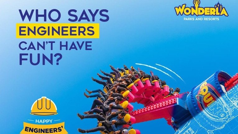 ಬೆಂಗಳೂರು: ಇಂಜಿನಿಯರ್ಸ್ ದಿನದ ಪ್ರಯುಕ್ತ ಸೆಪ್ಟೆಂಬರ್ 15ರಂದು ಇಂಜಿನಿಯರಿಂಗ್ ಪದವಿ ಪಡೆದ ಎಲ್ಲಾ ನಾಗರಿಕರಿಗೂ ವಂಡರ್ಲಾದ ಒಂದು ಟಿಕೆಟ್ ಖರೀದಿಸಿದರೆ ಮತ್ತೊಂದು ಟಿಕೆಟ್ ಉಚಿತವಾಗಿ ನೀಡುವ ಕೊಡುಗೆಯನ್ನು ವಂಡರ್ಲಾ ಘೋಷಿಸಿದೆ.