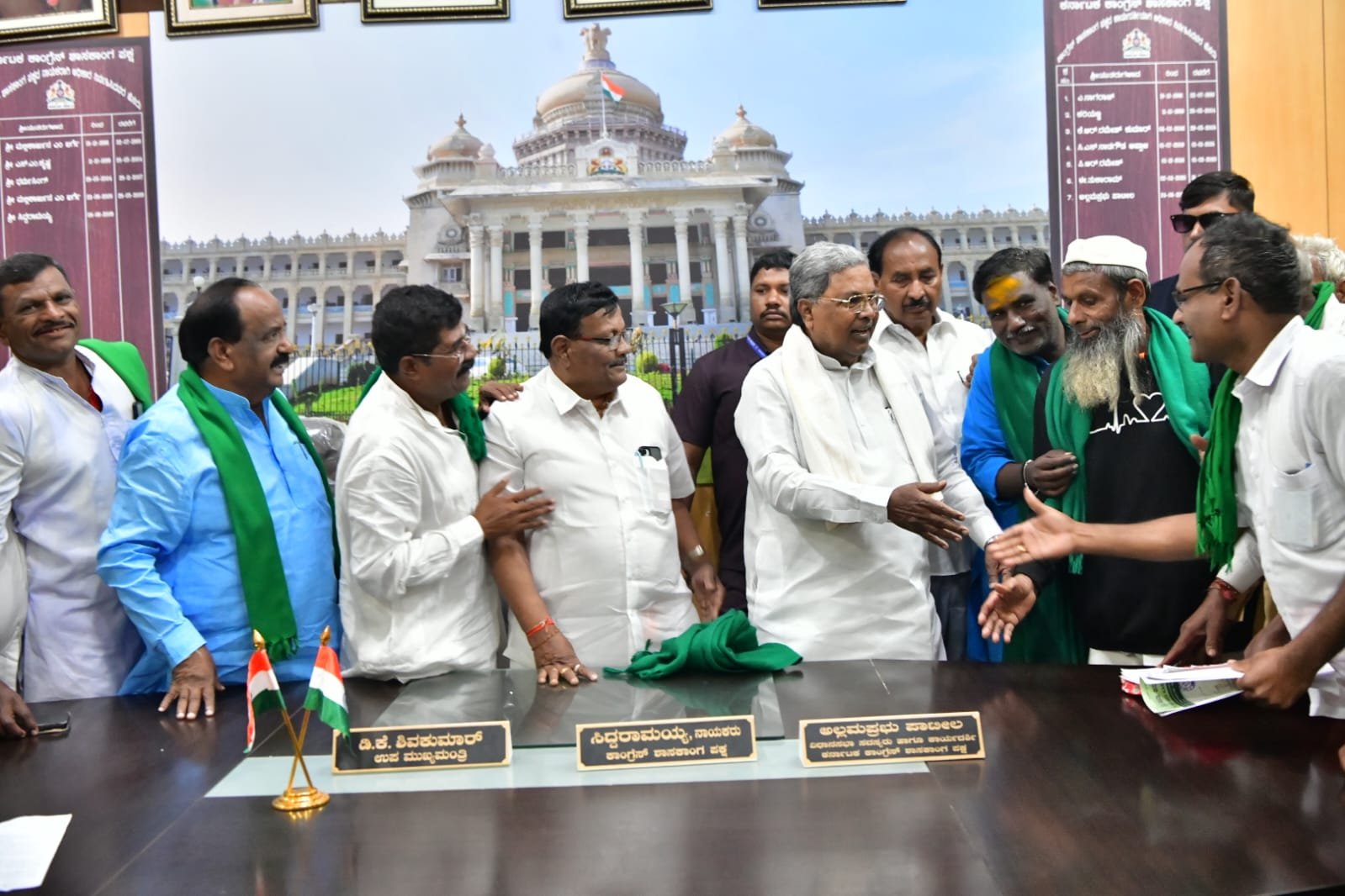 ಬೆಂಗಳೂರು : ಮಹಾದಾಯಿ ಕಳಸಾ-ಬಂಡೂರಿ ಯೋಜನೆ ಜಾರಿಗೆ ಕೇಂದ್ರ ಸರ್ಕಾರ ವನ್ಯಜೀವಿ ಮಂಡಳಿ ಅನುಮತಿ ನೀಡಿದ ತಕ್ಷಣ ಕಾಮಗಾರಿ ಪ್ರಾರಂಭಿಸಲಾಗುವದು ಎಂದು ಮಹದಾಯಿ ರೈತ ಹೋರಾಟಗಾರರಿಗೆ ಮುಖ್ಯಮಂತ್ರಿ ಸಿದ್ದರಾಮಯ್ಯ ಹಾಗೂ ಉಪಮುಖ್ಯಮಂತ್ರಿ ಡಿ.ಕೆ. ಶಿವಕುಮಾರ ಭರವಸೆ ನೀಡಿದರು.