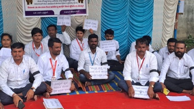 ನವಲಗುಂದ : ರಾಜ್ಯದ ಗ್ರಾಮ ಆಡಳಿತ ಅಧಿಕಾರಿಗಳ ಸಮಸ್ಯೆ ಹಾಗೂ ವಿವಿಧ ಬೇಡಿಕೆಗಳನ್ನು ಈಡೇರಿಸುವಂತೆ ಆಗ್ರಹಿಸಿ ಕರ್ನಾಟಕ ರಾಜ್ಯ ಗ್ರಾಮ ಆಡಳಿತ ಅಧಿಕಾರಿಗಳ ನವಲಗುಂದ ತಾಲ್ಲೂಕಾ ಸಂಘದಿಂದ ಪಟ್ಟಣದ ನವಲಗುಂದ ತಹಸೀಲ್ದಾರ್ ಕಚೇರಿ ಆವರಣದಲ್ಲಿ ಅನಿರ್ದಿಷ್ಟಾವದಿ ಪ್ರತಿಭಟನೆ ನಡೆಸಿದರು.