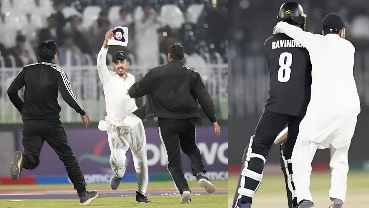 ರಾವಲ್ಪಿಂಡಿ ಕ್ರಿಕೆಟ್ ಸ್ಟೇಡಿಯಂನಲ್ಲಿ ನಡೆದ ಈ ಪಂದ್ಯದ ದ್ವಿತೀಯ ಇನಿಂಗ್ಸ್ ವೇಳೆ ಯುವಕನೋರ್ವ ತೆಹ್ರೀಕ್-ಇ-ಲಬ್ಬೈಕ್ ಪಕ್ಷದ ನಾಯಕ ಸಾದ್ ರಿಝ್ವಿಯ ಫೋಟೋ ಹಿಡಿದು ಮೈದಾನಕ್ಕೆ ನುಗ್ಗಿದ್ದ. ಅಲ್ಲದೆ ನೇರವಾಗಿ ಬ್ಯಾಟ್ ಮಾಡುತ್ತಿದ್ದ ನ್ಯೂಜಿಲೆಂಡ್ ಆಟಗಾರ ರಚಿನ್ ರವೀಂದ್ರ(ಕರ್ನಾಟಕ ಮೂಲದ ಬ್ಯಾಟ್ಸ್ಮನ್) ಅವರನ್ನು ತಬ್ಬಿಕೊಳ್ಳಲು ಯತ್ನಿಸಿದ್ದಾರೆ.
