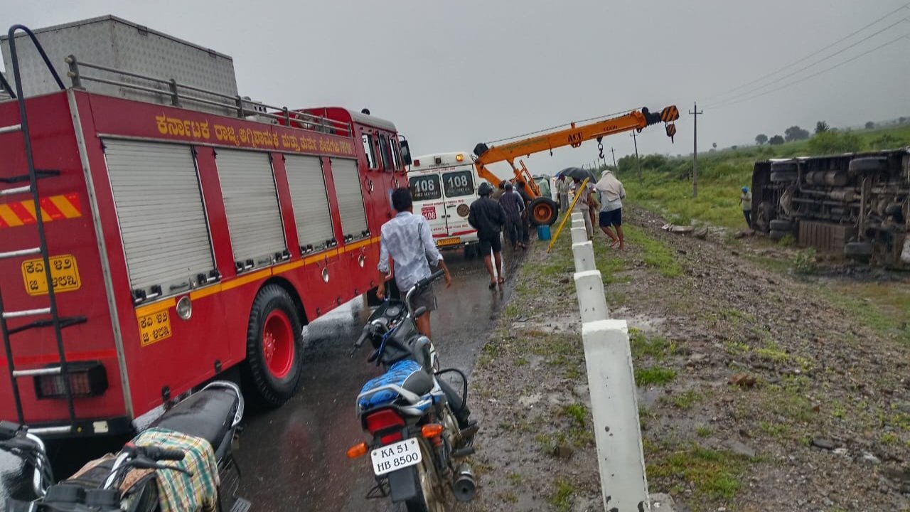 ದಾವಣಗೆರೆಯಿಂದ ರಾಯಚೂರಿಗೆ ಬರುತ್ತಿದ್ದ ಬಸ್ ಇದಾಗಿದ್ದು, ಏಕಾಏಕಿ ನಾಯಿ ಅಡ್ಡಬಂದಿದ್ದನ್ನು ತಪ್ಪಿಸಲು ಹೋಗಿ ಚಾಲಕ ಬಸ್ ಅನ್ನು ಎಡಕ್ಕೆ ತಿರುವಿದ್ದಾನೆ. ಆಗ ಬಸ್ ನಿಯಂತ್ರಣ ತಪ್ಪಿ ರಸ್ತೆ ಪಕ್ಕದ ಜಮೀನಿಗೆ ಉರುಳಿದೆ ಎಂದು ಹೇಳಲಾಗುತ್ತಿದೆ.