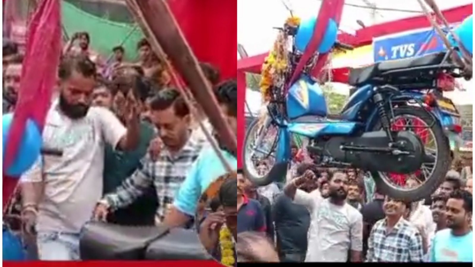 ಭೂಪಾಲ್ : ಮೊದಲ ಬಾರಿಗೆ ಮೋಟರ್ ಬೈಕ್ ಖರೀದಿ ಮಾಡಿದ ಟೀ ಸ್ಟಾಲ್ ಮಾಲೀಕನೊಬ್ಬ ತನ್ನಿಡೀ ಏರಿಯಾ ಪೂರ್ತಿ ಡಿಜೆ ಮೆರವಣಿಗೆ ನಡೆಸಿ, ಸಂಭ್ರಮಾಚರಣೆ ಮಾಡಿದ ಘಟನೆ ಮಧ್ಯಪ್ರದೇಶದ ಶಿವಪುರಿ ಪಟ್ಟಣದಲ್ಲಿ ನಡೆದಿದೆ.