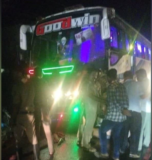 ಖಾಸಗಿ ಬಸ್-ಬೈಕ್ ಮಧ್ಯೆ ಅಪಘಾತ