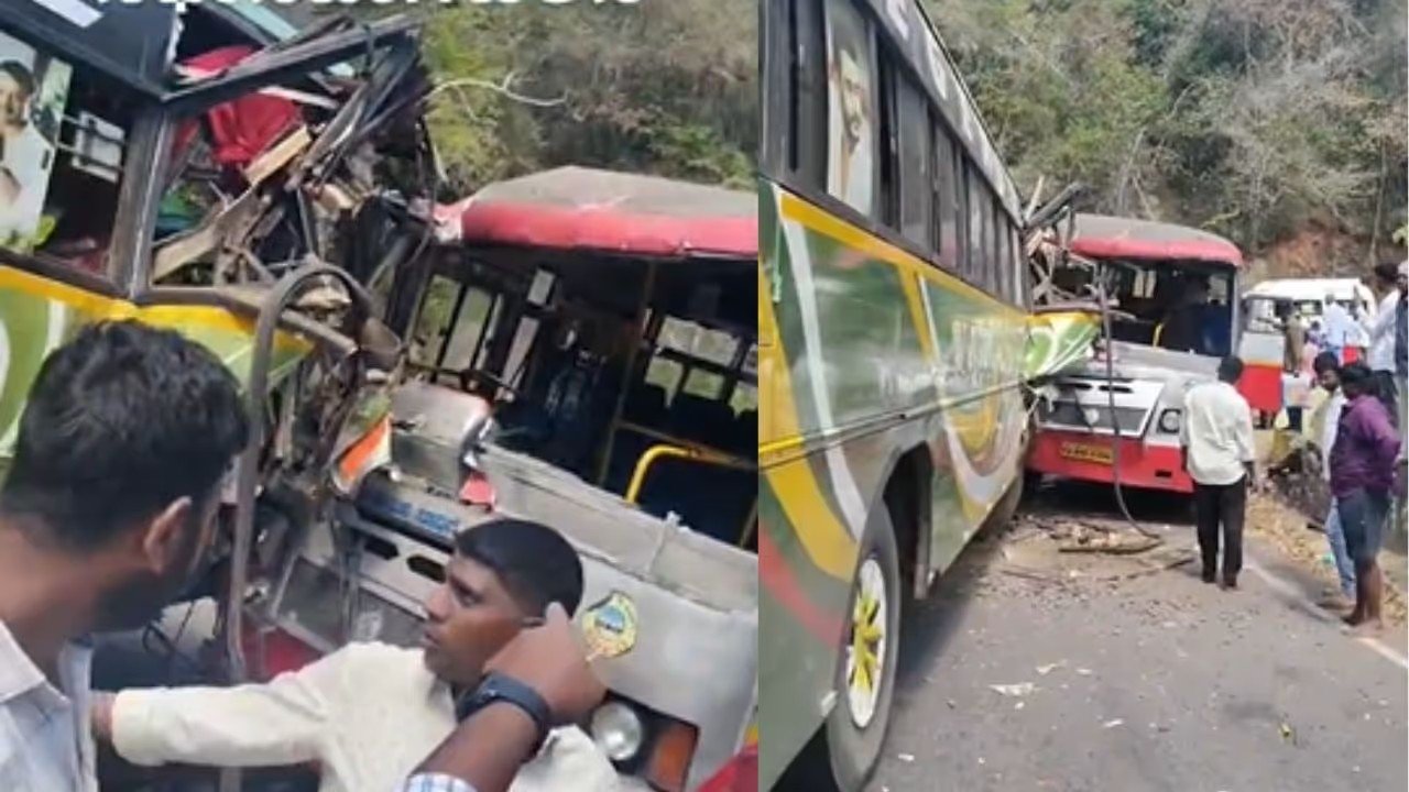 ಮಲೆ ಮಹದೇಶ್ವರ ಘಾಟ್‌ನಲ್ಲಿ ಭೀಕರ ರಸ್ತೆ ಅಪಘಾತ: ಎರಡು ಬಸ್‌ಗಳ ಮುಖಾಮುಖಿ ಡಿಕ್ಕಿ, ಹಲವರಿಗೆ ಗಾಯ