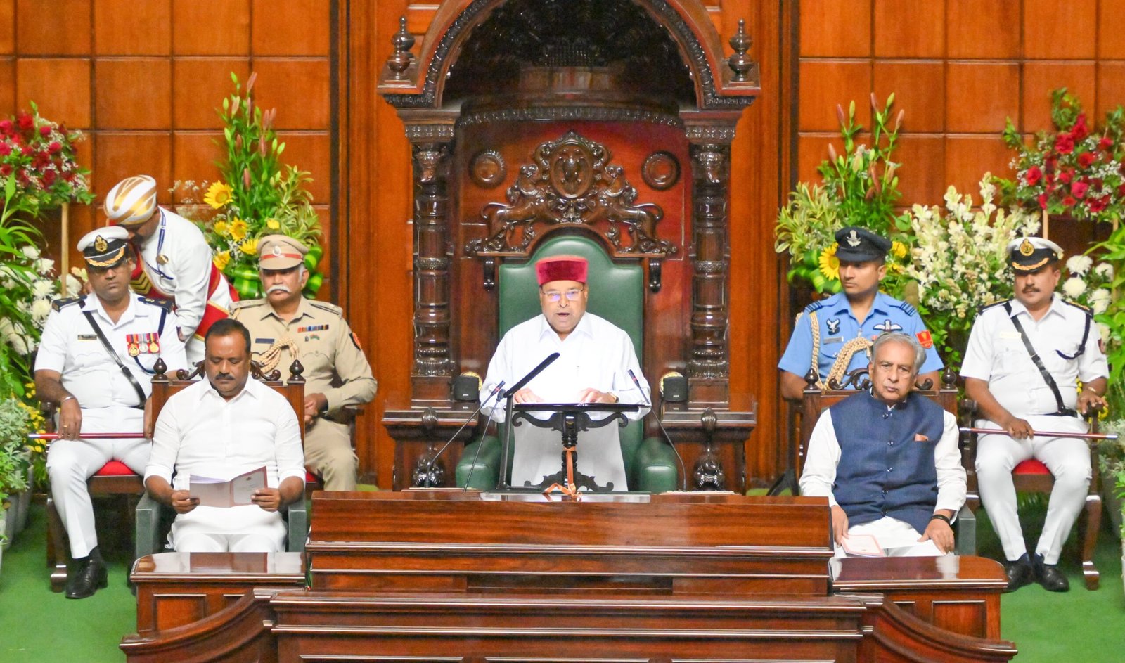 ಸಂಪ್ರದಾಯದAತೆ ಸದನಕ್ಕೆ ಆಗಮಿಸಿದ ರಾಜ್ಯಪಾಲರು ಜಂಟಿ ಅಧಿವೇಶನ ಉದ್ದೇಶಿಸಿ ಮಾತನಾಡಿದರು. ಮೂರೇ ಲೈನ್ನಲ್ಲಿ ಭಾಷಣ ಮುಗಿಸಿ ಹೊರಗೆ ನಡೆದರು. ರಾಜ್ಯಪಾಲರ ನಡೆಯನ್ನು ಬಿಜೆಪಿ ಶಾಸಕರು ಸ್ವಾಗತಿಸಿದರೆ, ಕಾಂಗ್ರೆಸ್ ಶಾಸಕರು ರಾಜ್ಯಪಾಲರನ್ನು ಅಡ್ಡಗಟ್ಟುವ ಪ್ರಯತ್ನ ನಡೆಸಿದರು.