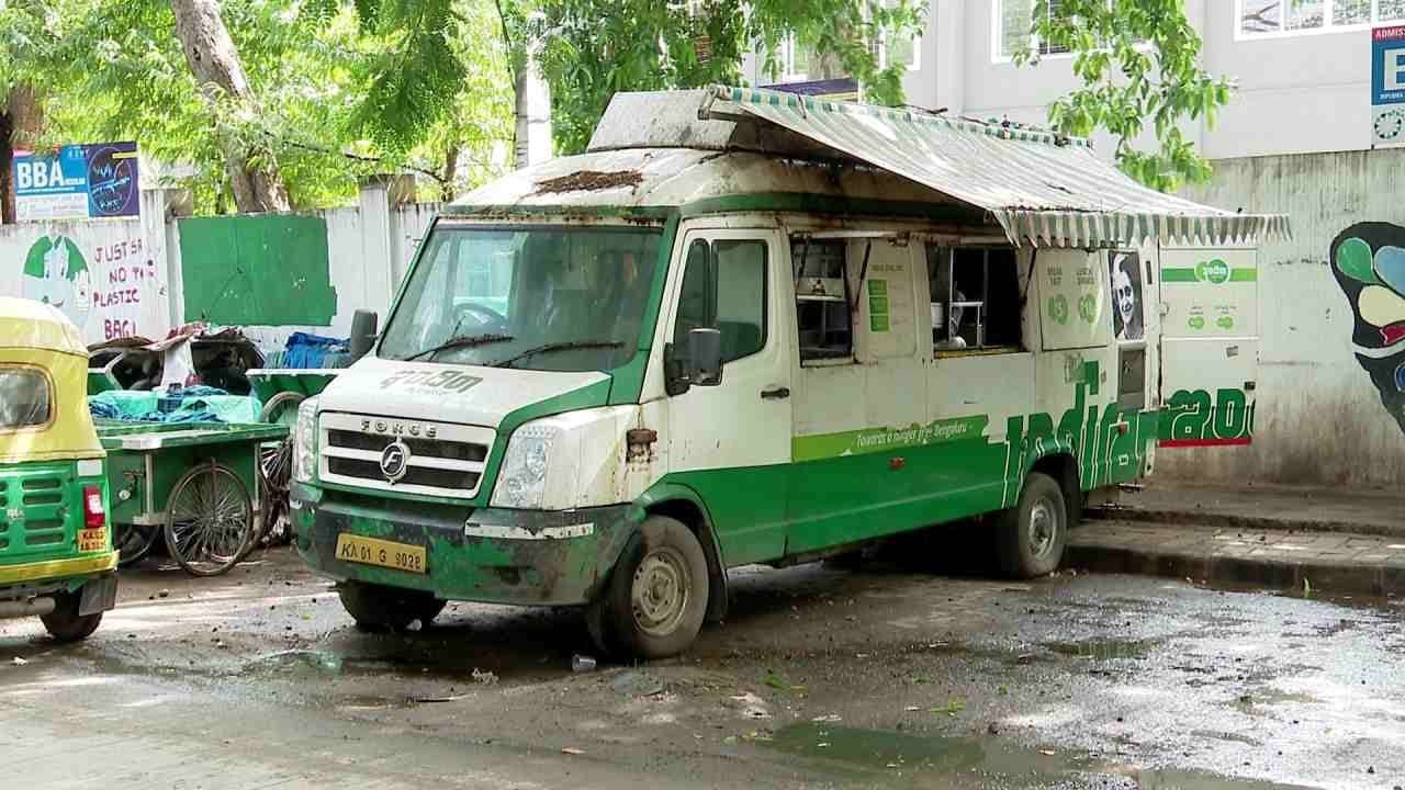 ಜಯನಗರದ 9ನೇ ಬ್ಲಾಕ್ನಲ್ಲಿರುವ ಸಂಚಾರಿ ಇಂದಿರಾ ಮೊಬೈಲ್ ಕ್ಯಾಂಟೀನ್ನ ಡೋರ್ ಮುರಿದು ಹೋಗಿದೆ. ಟಯರ್ ಕಾಣೆಯಾಗಿದೆ. ವಸ್ತುಗಳು ಎಲ್ಲಂದರಲ್ಲಿ ಬಿದ್ದಿದ್ದಾವೇ, ಸ್ವಚ್ಛತೆಯೇ ಮರಿಚಿಕೆಯಾಗಿದೆ. ಇಲ್ಲಿನ ಇಂದಿರಾ ಮೊಬೈಲ್ ಕ್ಯಾಂಟೀನ್ ದುಸ್ಥಿತಿಗೆ ತಲುಪಿದ್ದು ಹೀಗೆಯೇ ಜನರಿಗೆ ಊಟ-ತಿಂಡಿ ಪೂರೈಕೆ ಮಾಡಲಾಗ್ತಿದೆ.