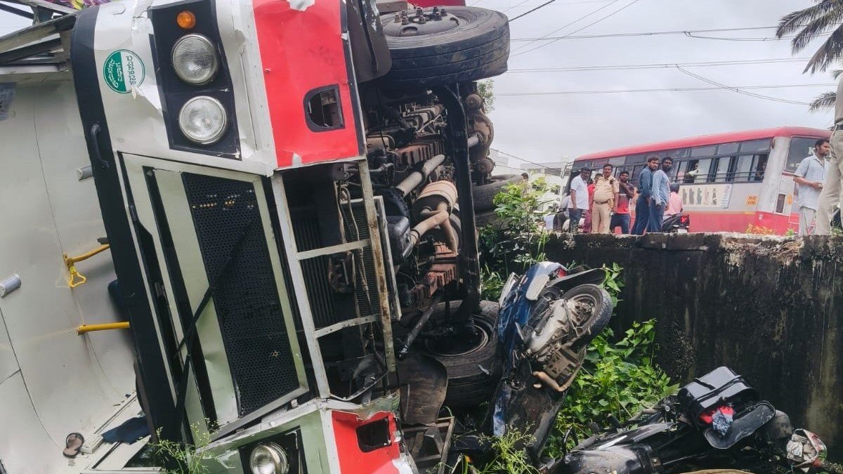 ಚಿತ್ರದುರ್ಗ: ಚಿತ್ರದುರ್ಗ ಜಿಲ್ಲೆಯ ಚಳ್ಳಕೆರೆ ತಾಲ್ಲೂಕಿನ ಹೆಗ್ಗೆರೆ ಗ್ರಾಮದ ಬಳಿ ಮಂಗಳವಾರ ಬೆಳಿಗ್ಗೆ ಕಲ್ಯಾಣ ಕರ್ನಾಟಕ ಸಾರಿಗೆ (ಕೆಕೆಆರ್ಟಿಸಿ) ಬಸ್ ಪಲ್ಟಿಯಾಗಿದೆ. ಬಸ್ನಲ್ಲಿ 44 ಜನರು ಪ್ರಯಾಣಿಸುತ್ತಿದ್ದರು. ಬಳ್ಳಾರಿಯಿಂದ ಬೆಂಗಳೂರಿಗೆ ಹೋಗುತ್ತಿದ್ದ ಸರ್ಕಾರಿ ಸಾರಿಗೆ ಬಸ್ ಪಲ್ಟಿಯಾಗಿದ್ದು, ಅದೃಷ್ಟವಶಾತ್ ದೊಡ್ಡ ದುರಂತವೊಂದು ತಪ್ಪಿದೆ. ಬಸ್ನಲ್ಲಿದ್ದ ಕೆಲವು ಪ್ರಯಾಣಿಕರಿಗೆ ಸಣ್ಣಪುಟ್ಟ ಗಾಯಗಳಾಗಿವೆ. ಮಾಹಿತಿಯ ಪ್ರಕಾರ, ಐದು ಮಂದಿ ಗಾಯಗೊಂಡವರನ್ನು ತಾಲ್ಲೂಕು ಆಸ್ಪತ್ರೆಗೆ ದಾಖಲಿಸಲಾಗಿದ್ದು, ಚಿಕಿತ್ಸೆ ನೀಡಲಾಗುತ್ತಿದೆ. ಚಳ್ಳಕೆರೆ ಪೊಲೀಸ್ ಠಾಣೆ ವ್ಯಾಪ್ತಿಯಲ್ಲಿ ಈ ಘಟನೆ ನಡೆದಿದ್ದು, ಪೊಲೀಸರು ಪ್ರಕರಣ ದಾಖಲಿಸಿಕೊಂಡು ತನಿಖೆ ನಡೆಸುತ್ತಿದ್ದಾರೆ. ಬಸ್ ಅಪಘಾತಕ್ಕೆ ನಿಖರ ಕಾರಣ ಇನ್ನೂ ತಿಳಿದುಬಂದಿಲ್ಲ.